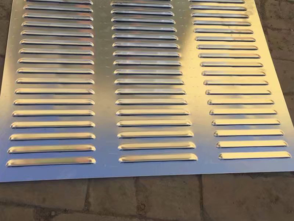 孔徑寬10mm孔長(zhǎng)100mm,上下50mm左右25mm百葉突出高度4.5mm。一般尺寸1X2米,1.25X2.5米特殊規(guī)格加工定做。